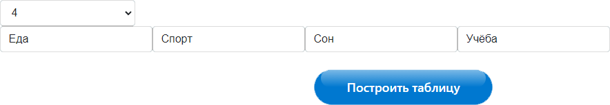 Пункт 4: Настроить количество критериев, выбрав число от 2 до 10 и указать их наименования. В случае отсутствия опыта работы с программой, рекомендуем использовать образец с главной страницы.Данные в столбцах можно вносить в любой размерности.